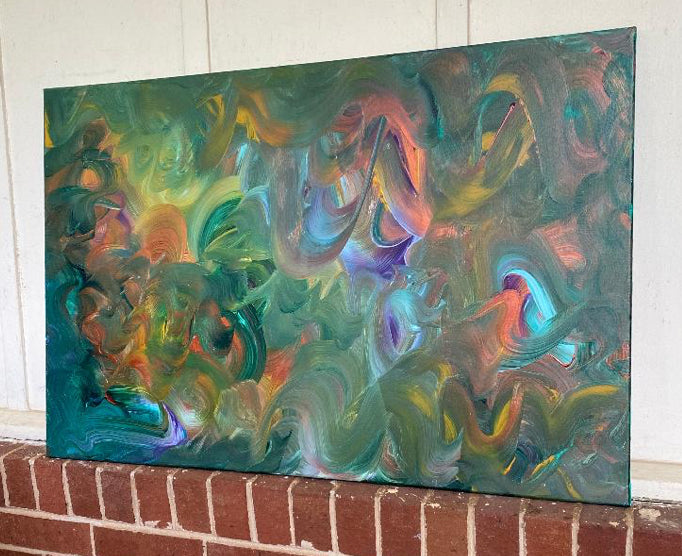 This is the largest abstract painting I’ve ever done at 24 by 36 and she is one I completed in 2020! The variation of colors that I did is one of my favorite things about this piece!