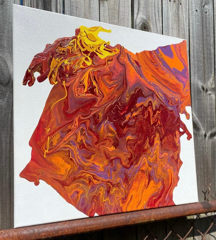 This 20 by 20 beauty was one of my first pour paints that I ever did in 2020 and I am so proud of how this one came out. This is not how I originally wanted it to come out, but it turned into kind of the shape of a heart.