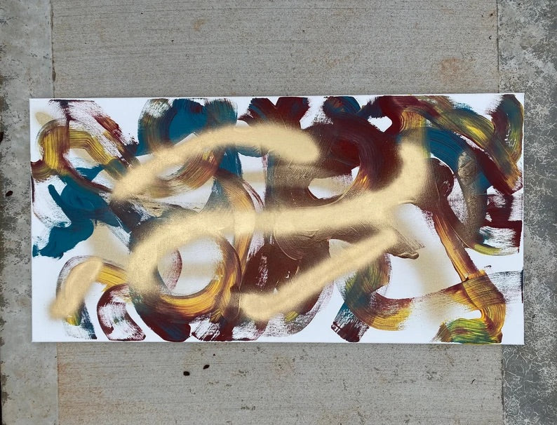 Discover the beauty of Sight Unseen, an abstract acrylic painting, with strokes of gold spray paint.